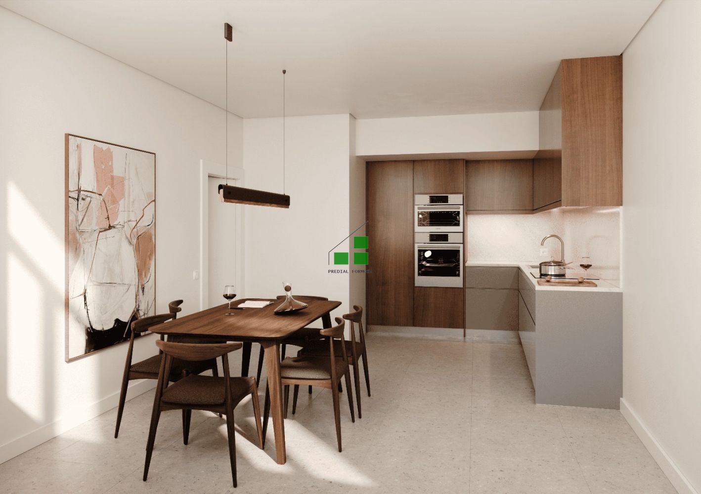 Sala de estar e cozinha independentes, bem como, uma zona de lavandaria também independente.
